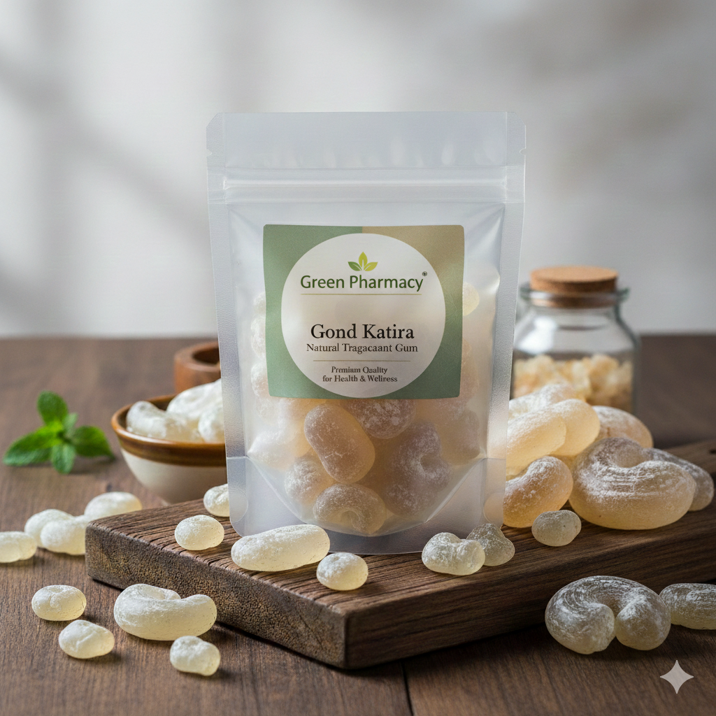 Gond katira, also known as tragacanth gum, is a natural gum that comes from the sap of plants in the Astragalus family. It's used in traditional medicine and cooking. Gond Katira is considered a cooling agent